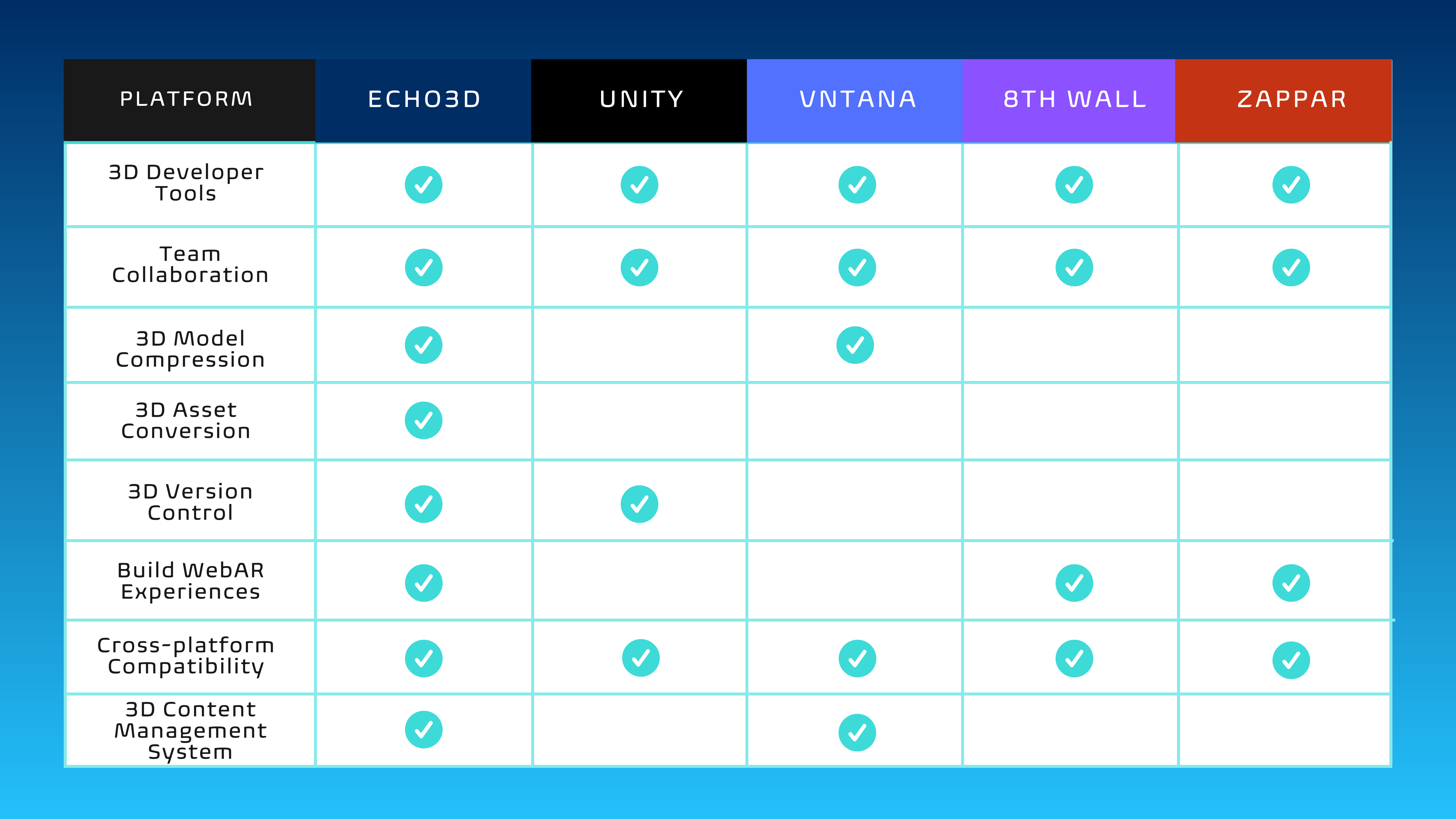 How echo3D compares to other 3D developer tools